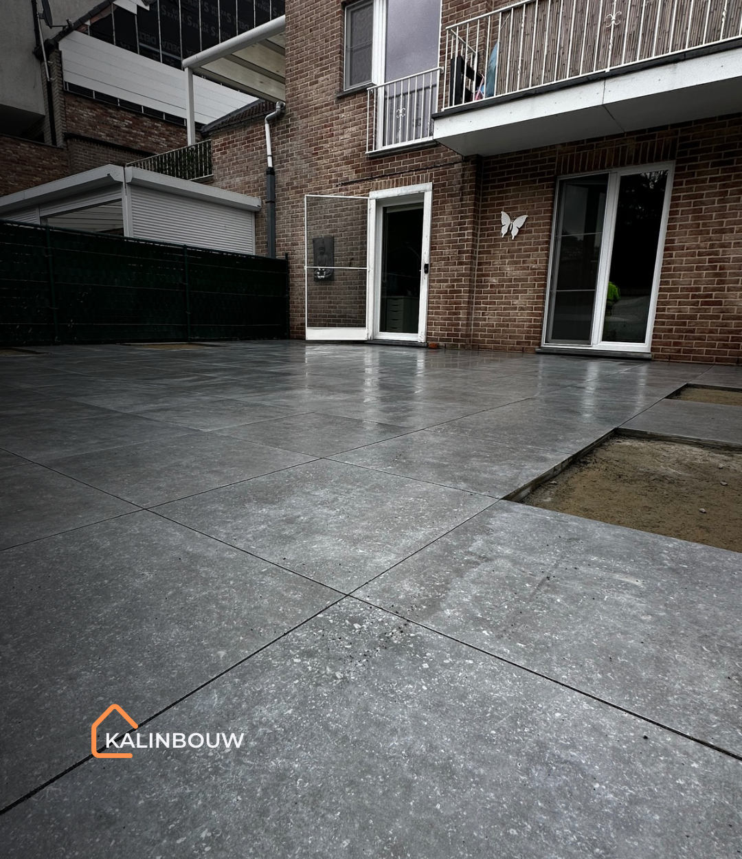 Het terras werd opnieuw aangelegd met keramische tegels van 60 / 60 / 2 cm in een mooie grijstint, die een tijdloze en verzorgde uitstraling geven. De ondergrond werd zorgvuldig geëgaliseerd en gestabiliseerd, waarna de tegels vakkundig verlijmd zijn om een duurzame en solide afwerking te garanderen.