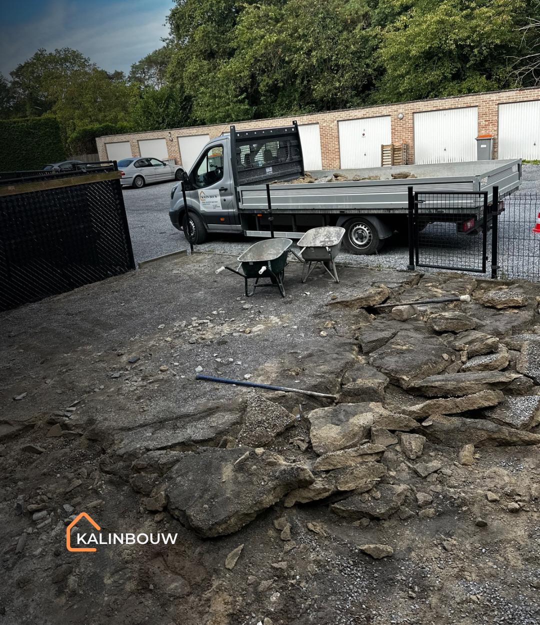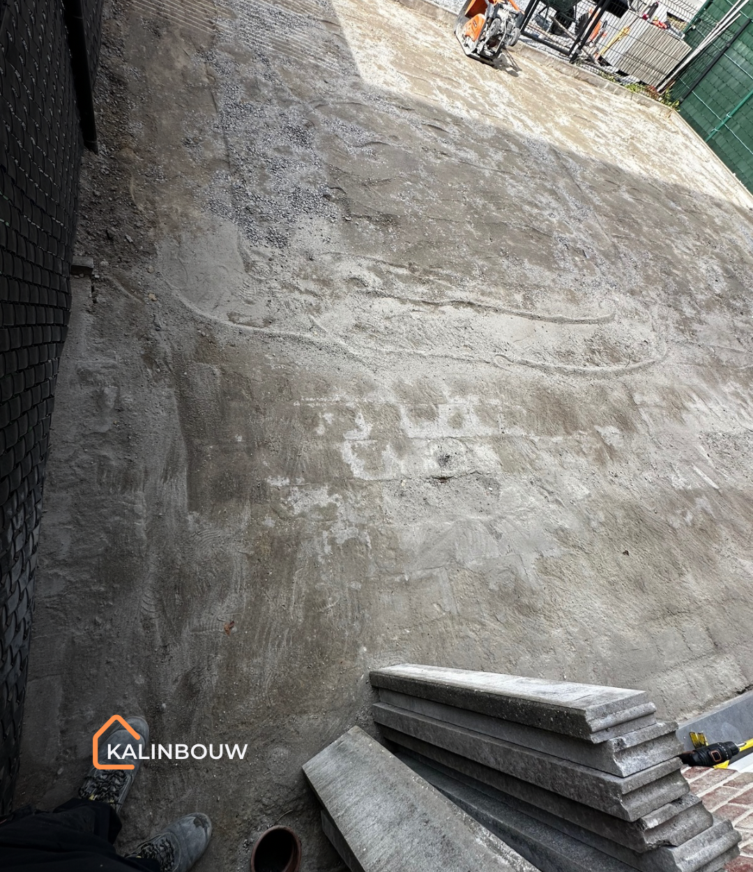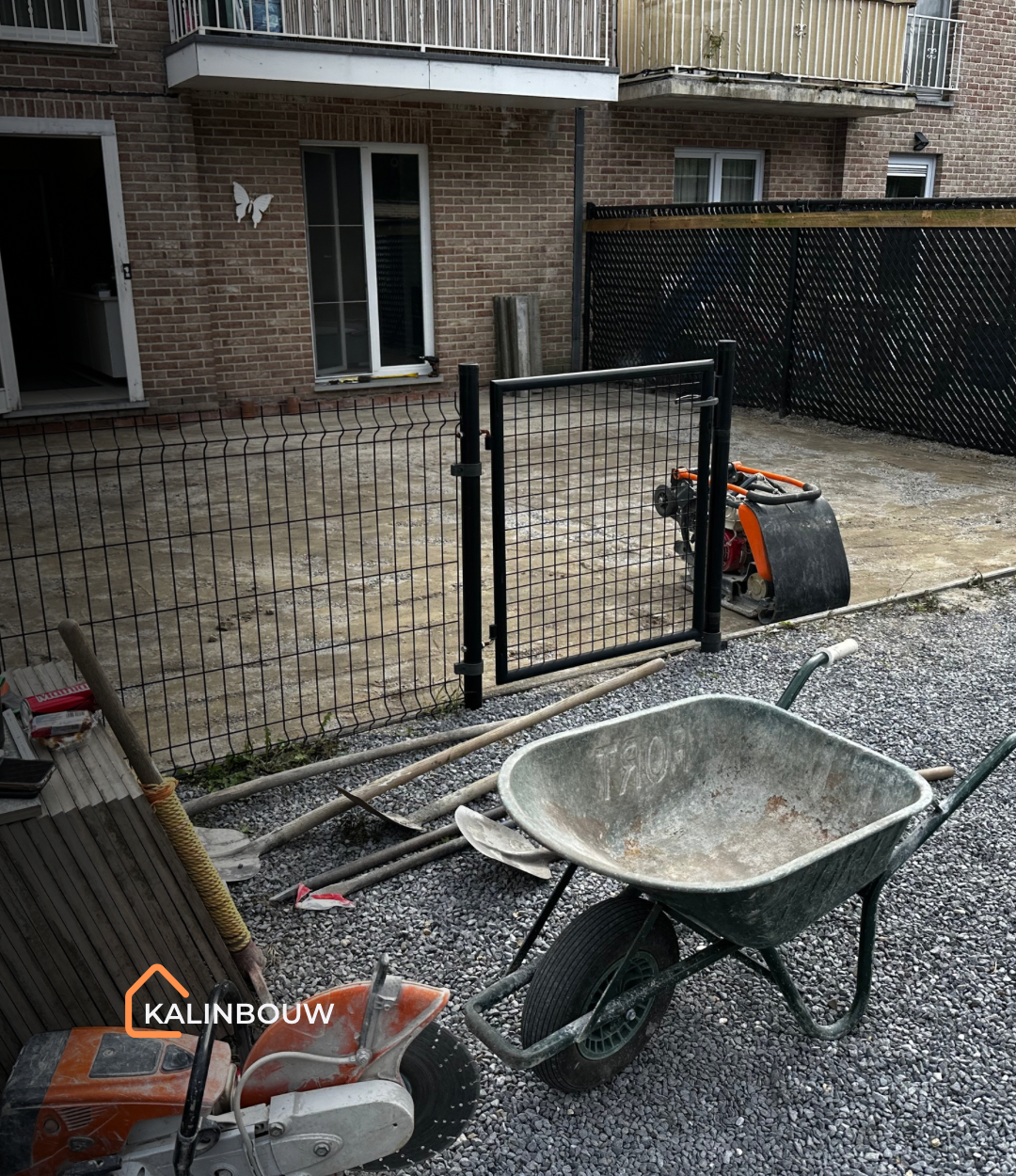 Voor dit project in Maasmechelen werd het bestaandeterras met versleten klinkers volledig afgebroken en afgevoerd, zodat een nieuwe, moderne buitenruimte kon worden gerealiseerd.