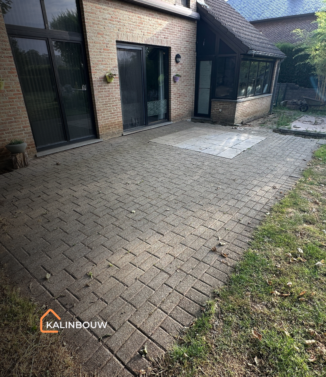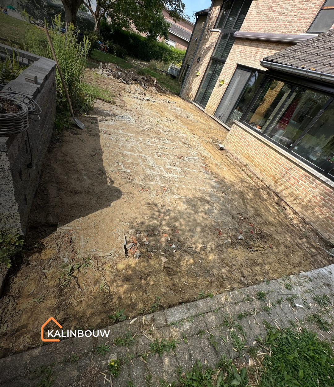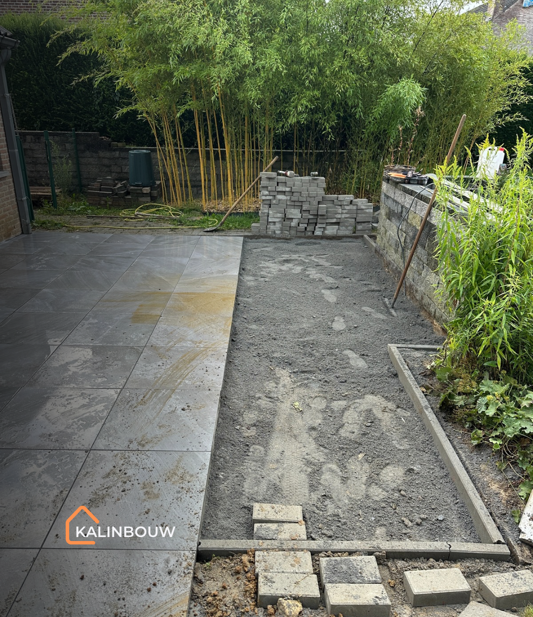 Voor dit project in Tielt-Winge werd een oud terras met betonklinkers volledig vernieuwd, omdat de bestaande bestrating veel onderhoud vereiste en regelmatig last had van onkruid. De opdrachtgevers wensten een nettere uitstraling en een functioneler terras.