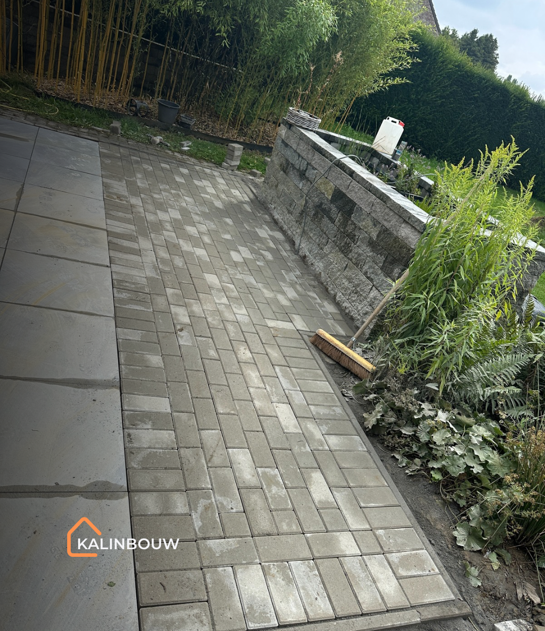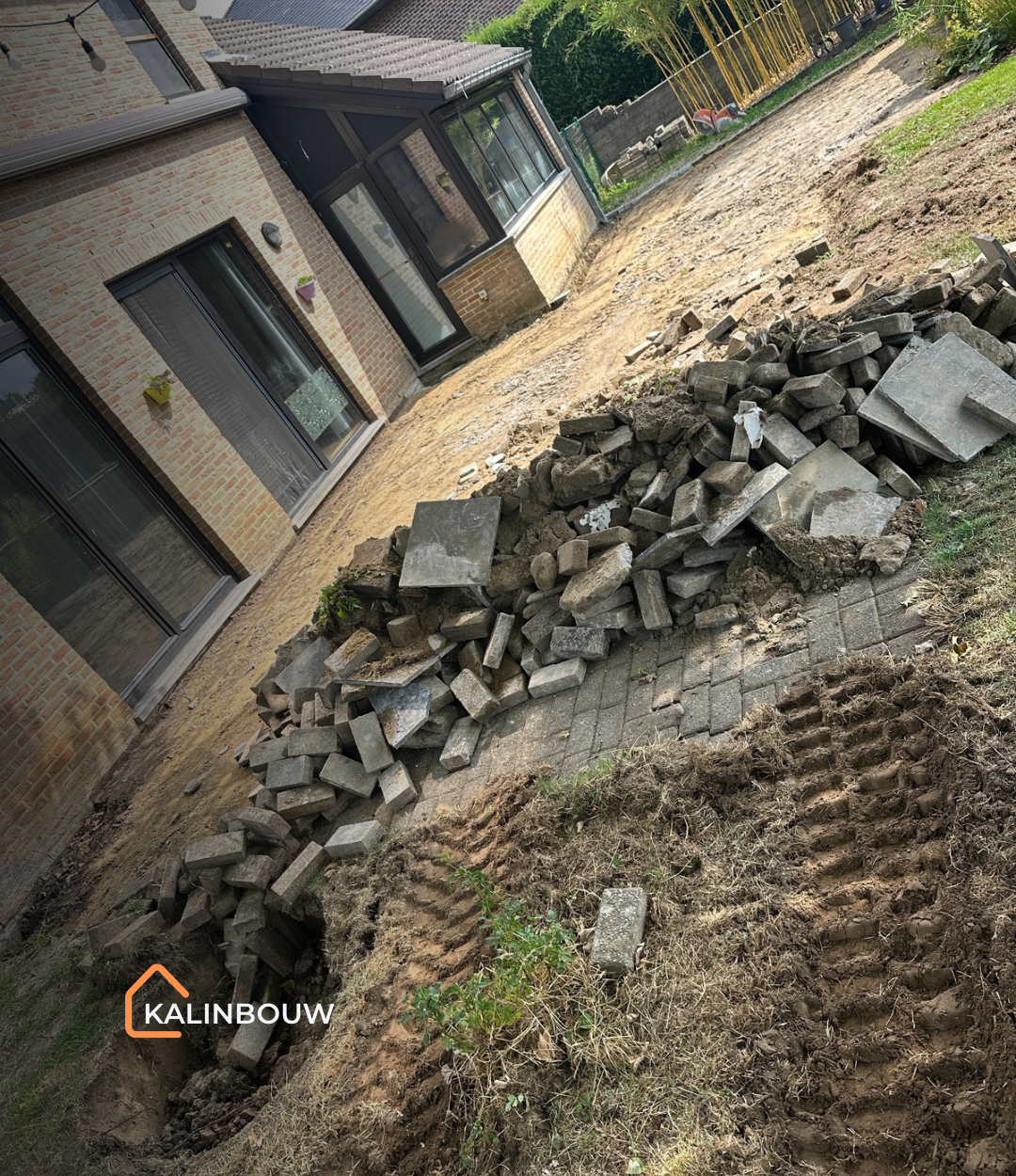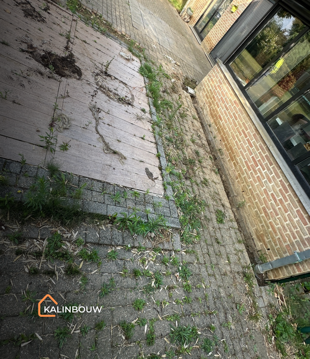 Voor dit project in Tielt-Winge werd een oud terras met betonklinkers volledig vernieuwd, omdat de bestaande bestrating veel onderhoud vereiste en regelmatig last had van onkruid. De opdrachtgevers wensten een nettere uitstraling en een functioneler terras.