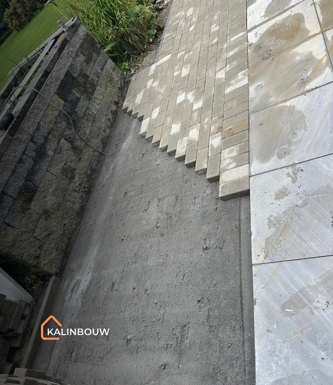 Een klein deel van het terras werd aangevuld met betonklinkers van 22 / 11 / 7 cm in grijs, zodat het geheel zowel functioneel als esthetisch mooi aansluit bij het keramische gedeelte.