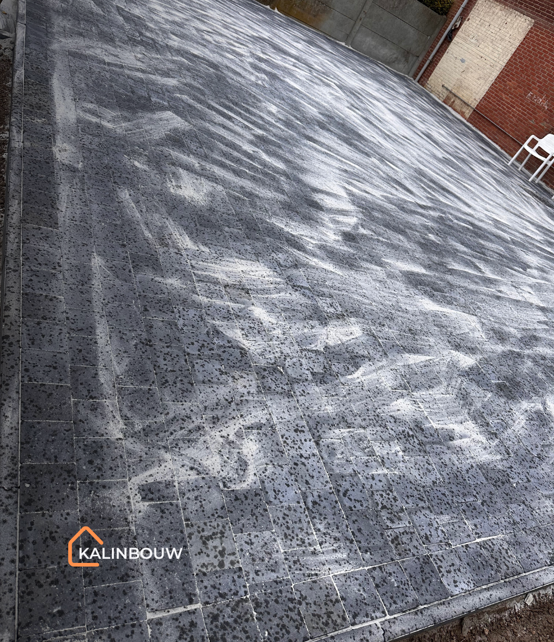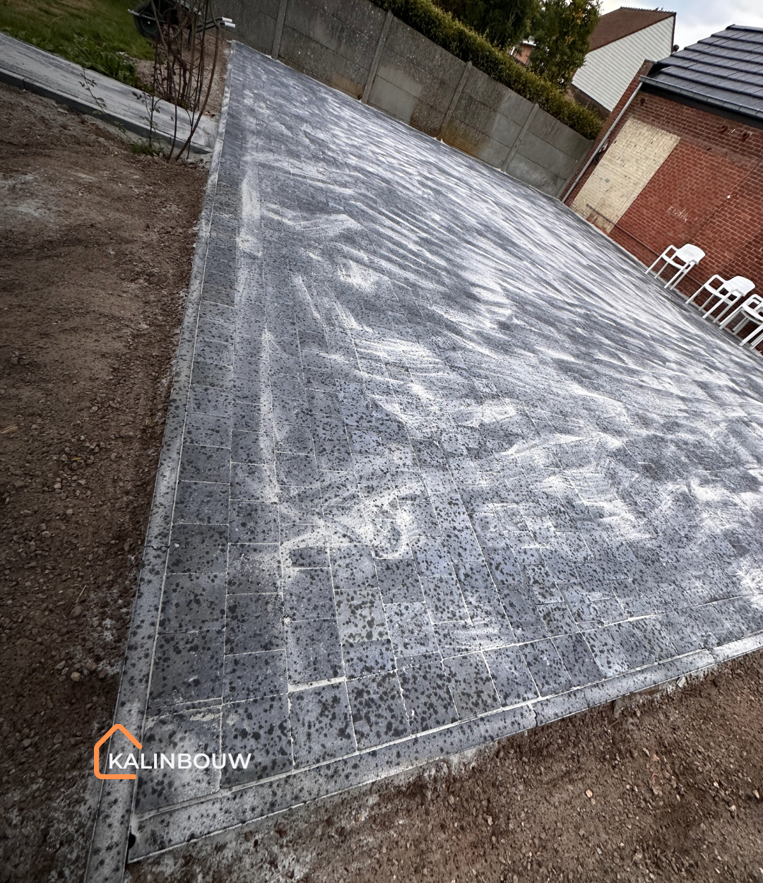 Door de zorgvuldige egalisatie en aanleg ligt de bestrating vlak, stabiel en onderhoudsvriendelijk, geschikt voor zowel het parkeren van voertuigen als recreatief gebruik van het terras.